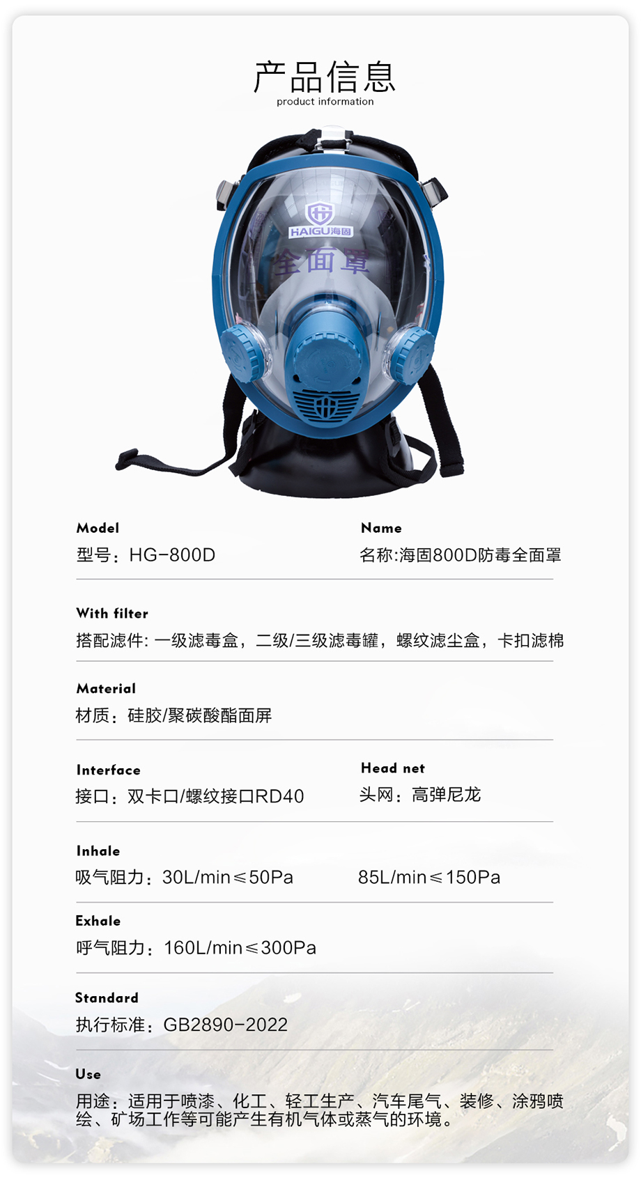 海固800D全面罩+KN100/KN95/KN90非油性颗粒物滤