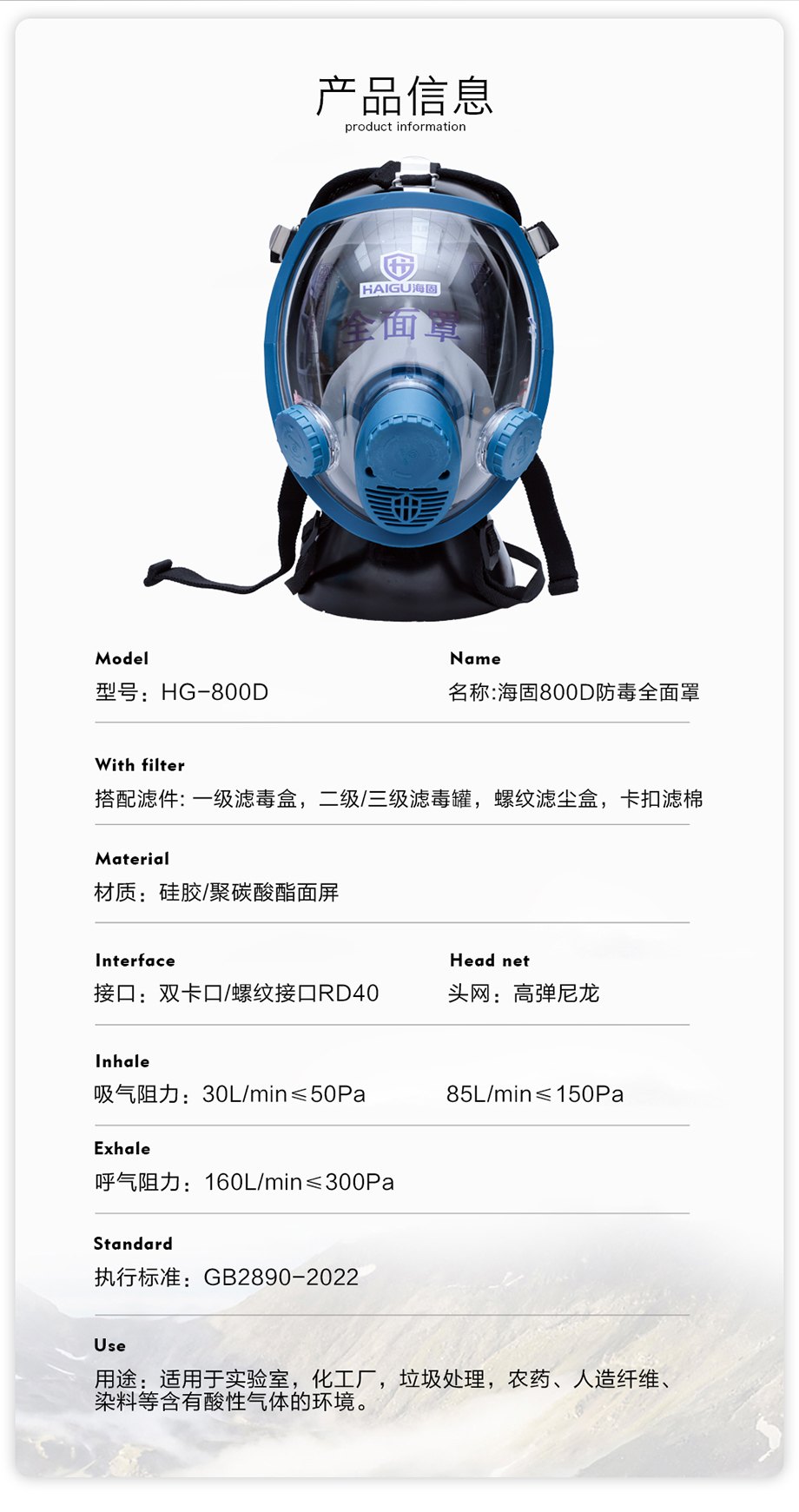 海固800D全面罩防毒面具+KP100/KP95/KP90油性及
