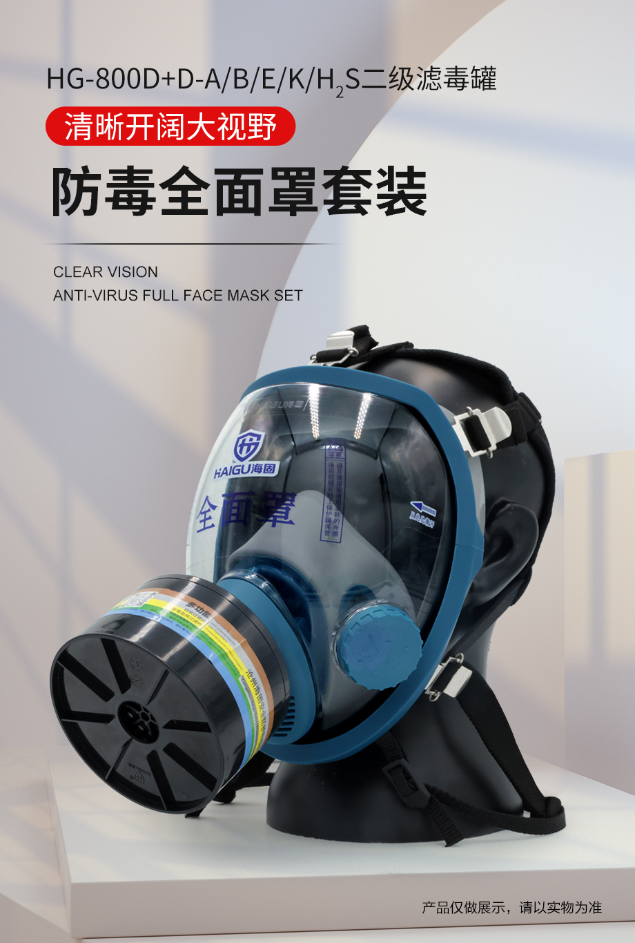 海固800D全面罩+D-A/B/E/K/H2S-2滤毒罐 综合防毒气套装