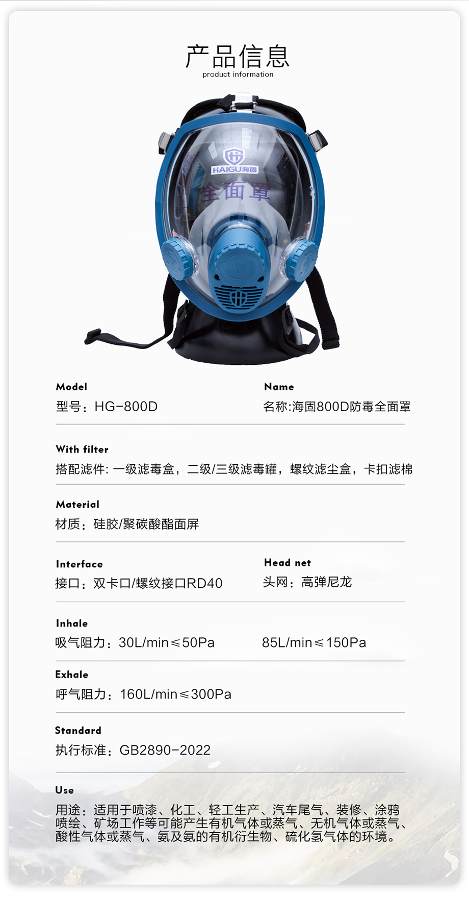 海固800D全面罩+KN100/KN95/KN90非油性颗粒物滤