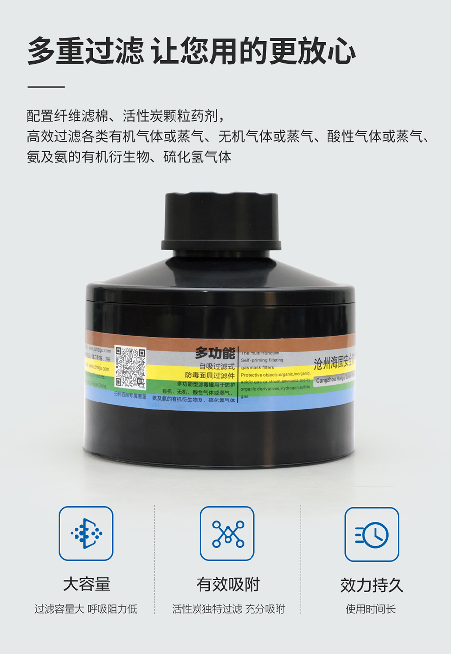 海固800D全面罩防毒面具+KP100/KP95/KP90油性及