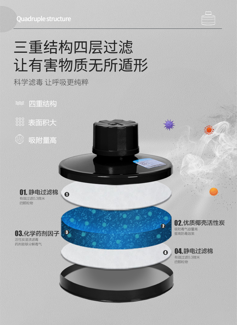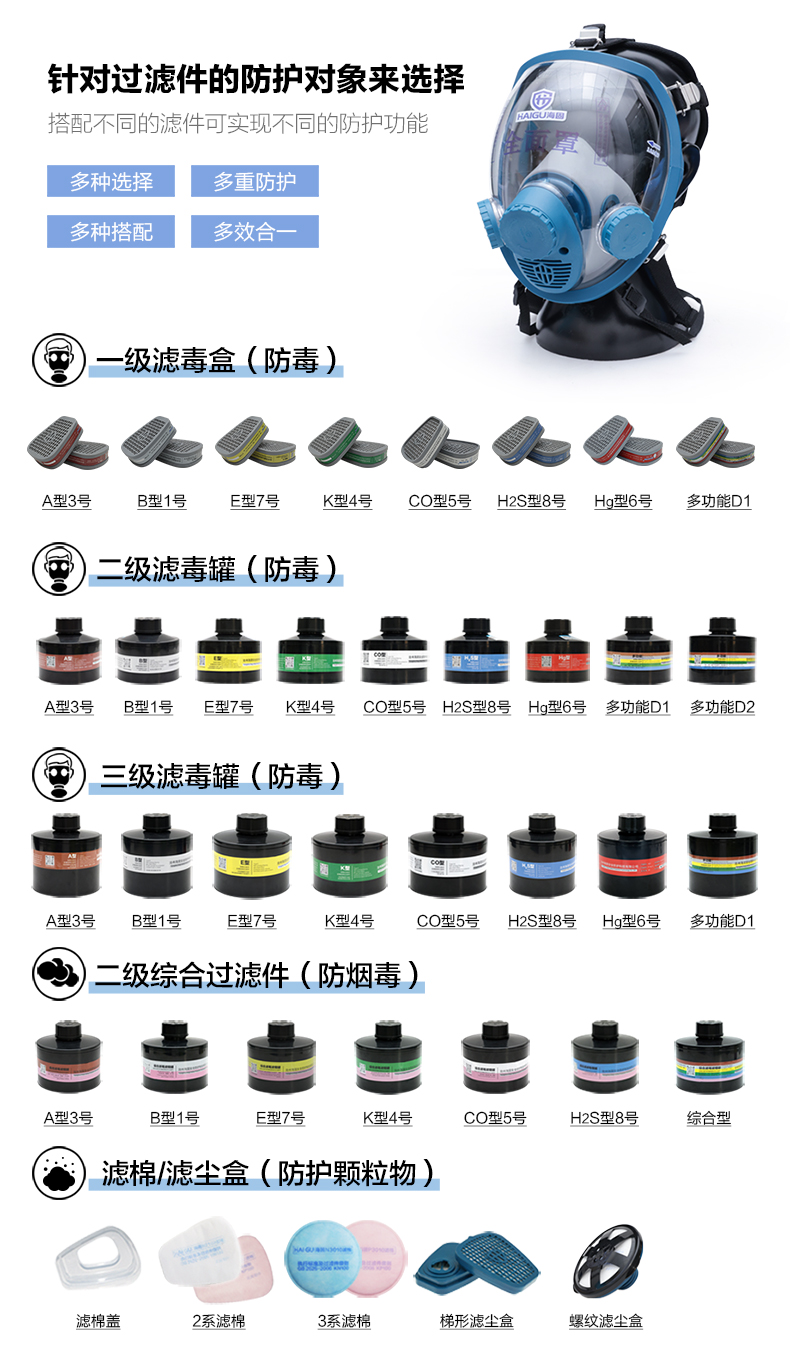 海固800D全面罩+D-A/B/E/K/H2S-3滤毒罐 综合防毒