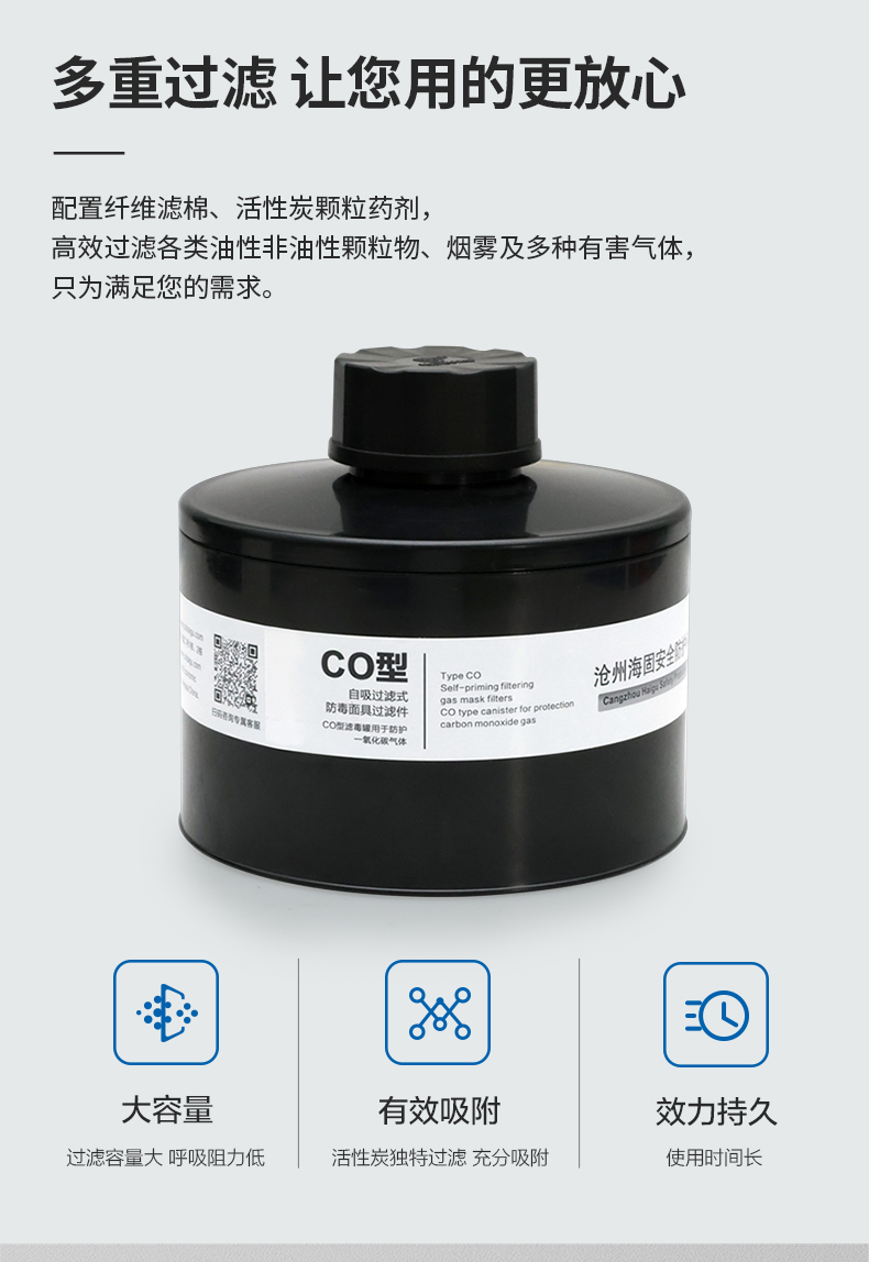 海固800D全面罩+P-CO-3滤毒罐 一氧化碳防毒面