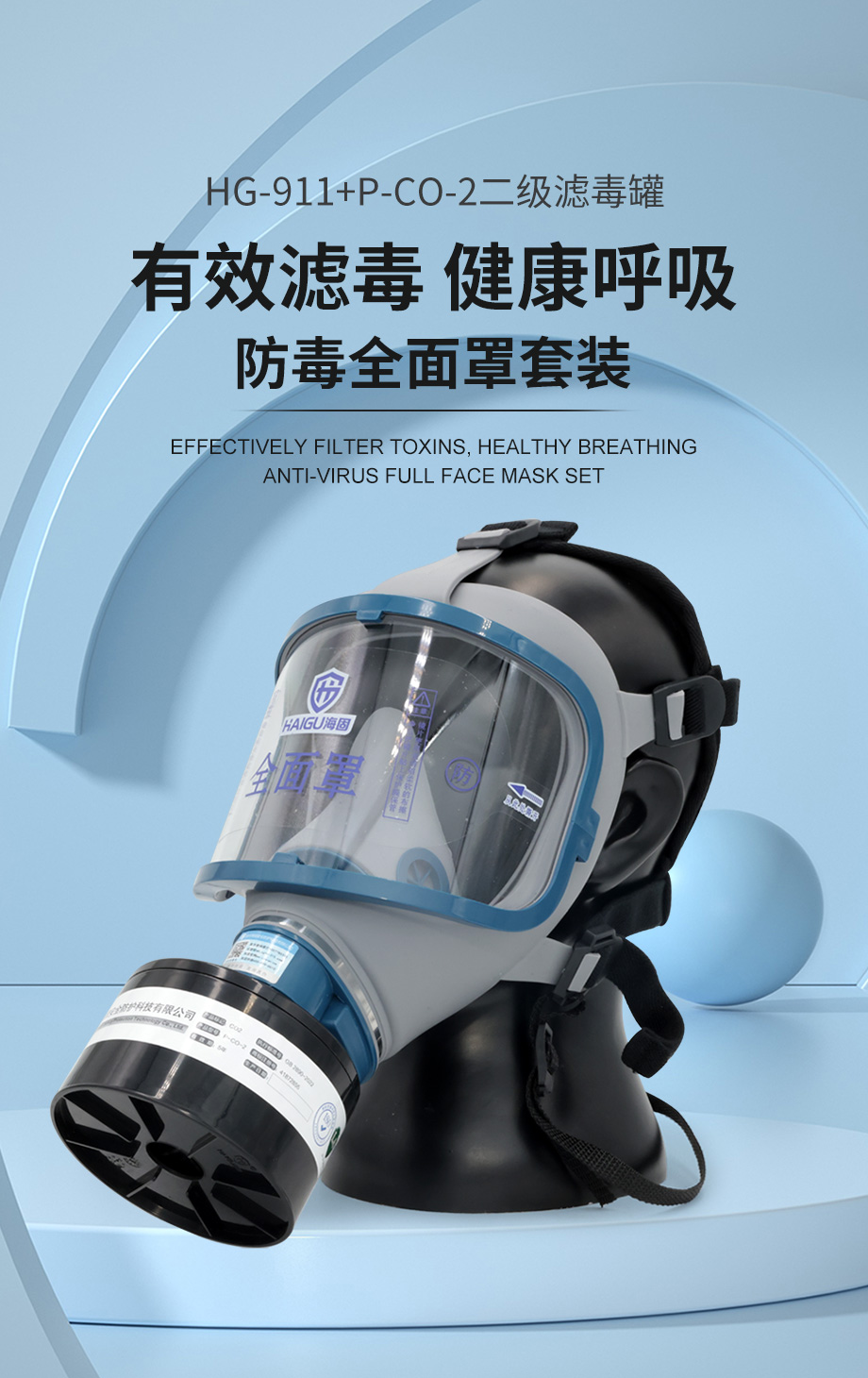 海固911全面罩+P-CO-2滤毒罐 一氧化碳防毒面具