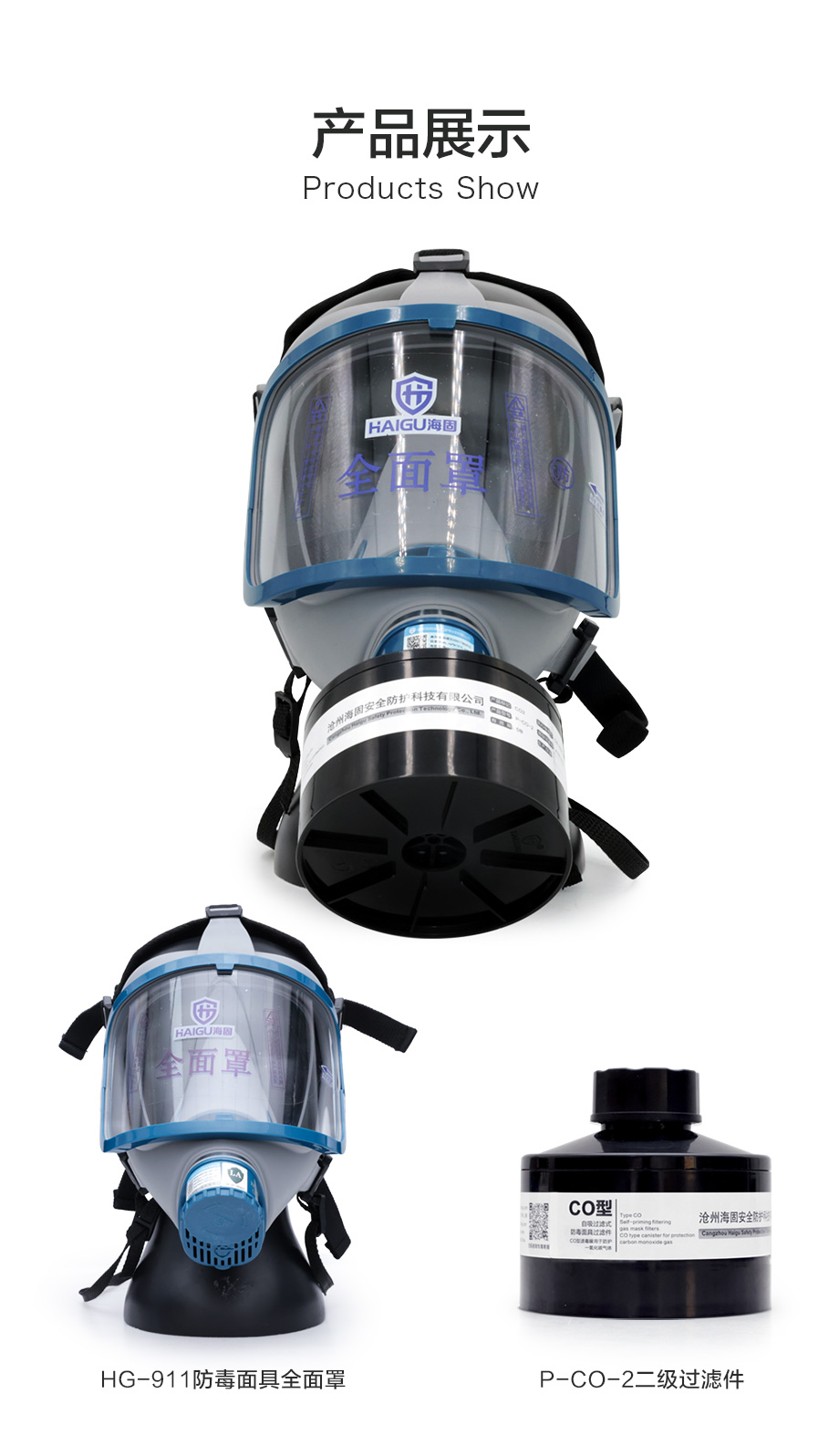 海固911全面罩+P-CO-2滤毒罐 一氧化碳防毒面
