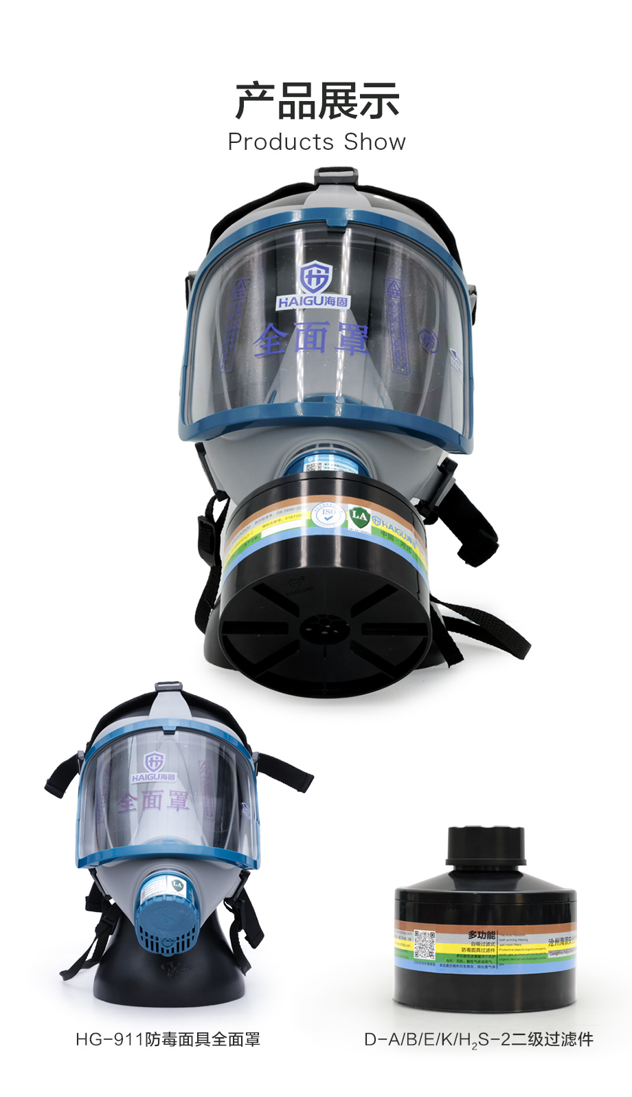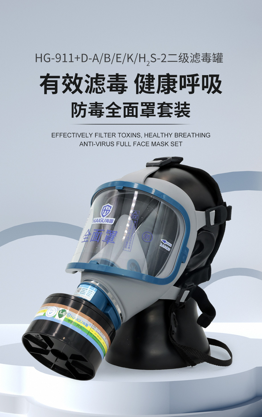 海固911全面罩+D-A/B/E/K/H2S-2滤毒罐 综合防毒