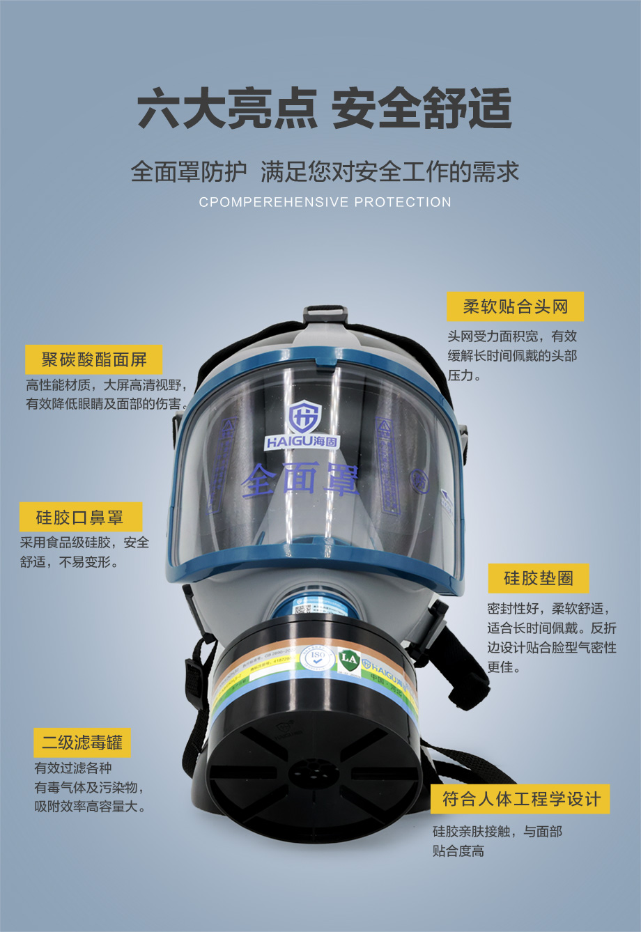 海固911全面罩+P-B-2滤毒罐 防毒面具 无机气