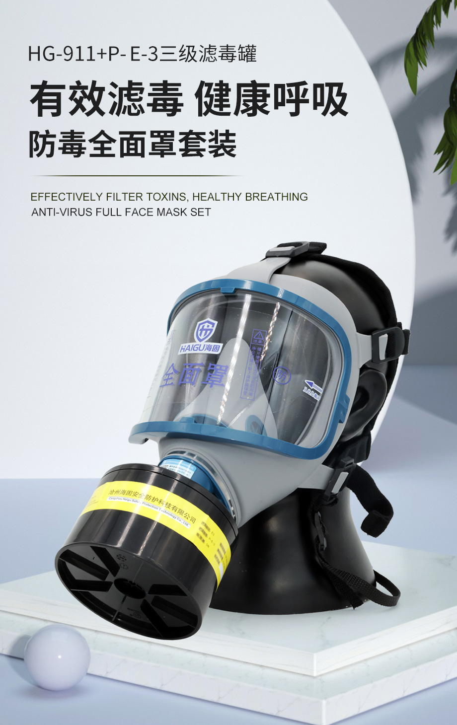 海固911全面罩+P-E-3滤毒罐 酸性气体专用