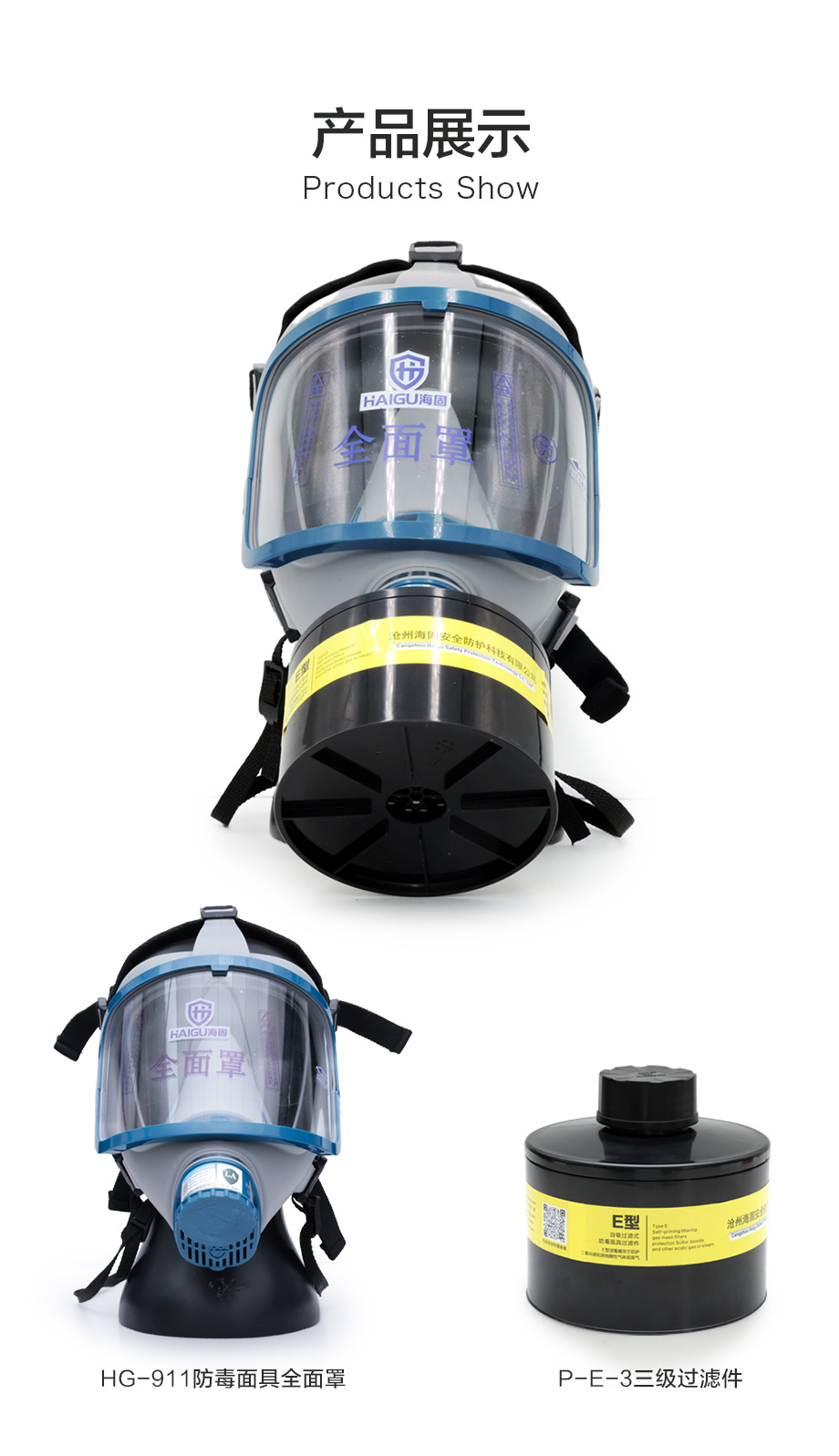 海固911全面罩+P-E-2滤毒罐 酸性气体专用