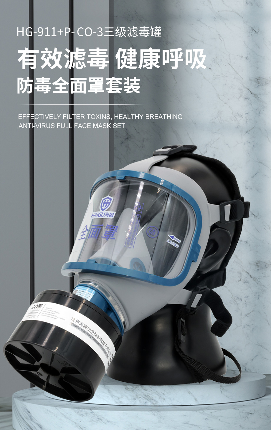 海固911全面罩+P-CO-3滤毒罐 一氧化碳防毒套装