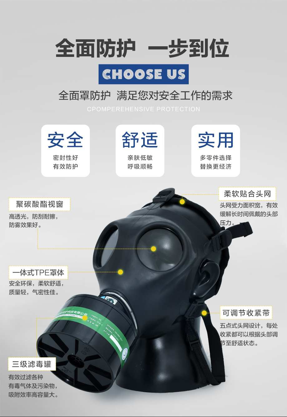 - 全面罩防毒气防毒面具