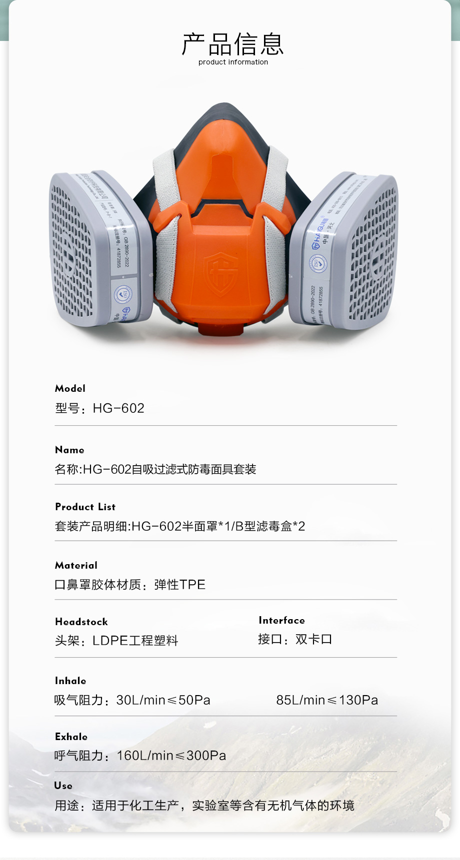 海固HG-602半面罩防毒面具+KP100/KP95/KP90油性