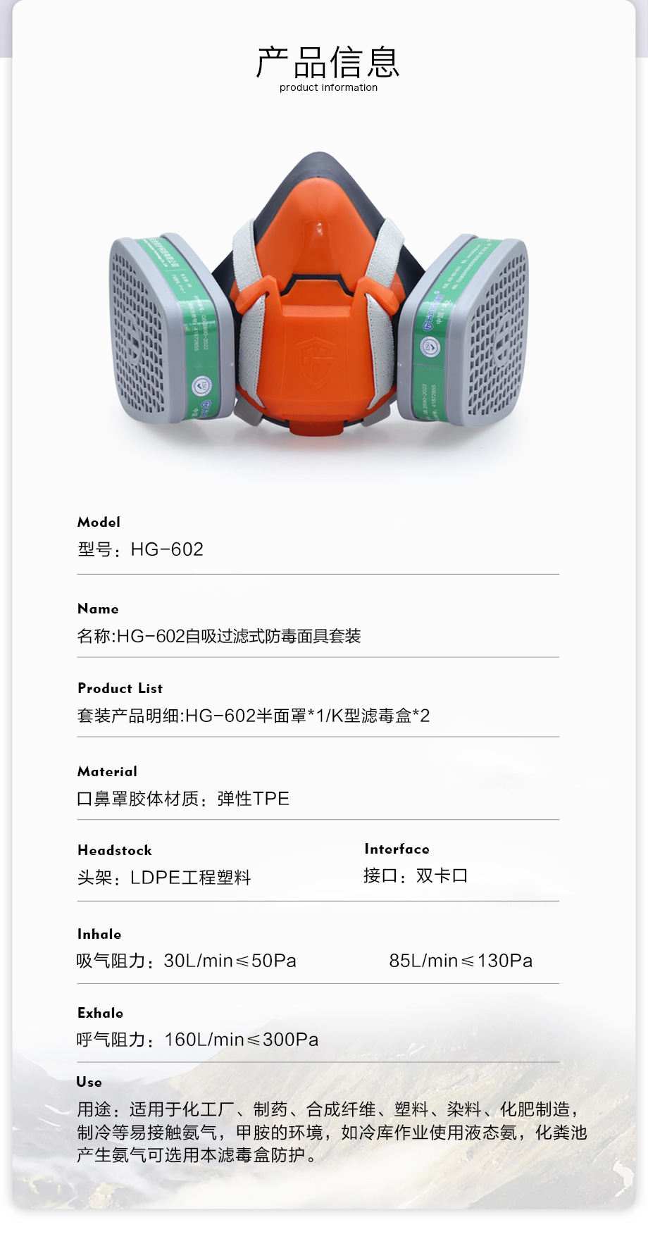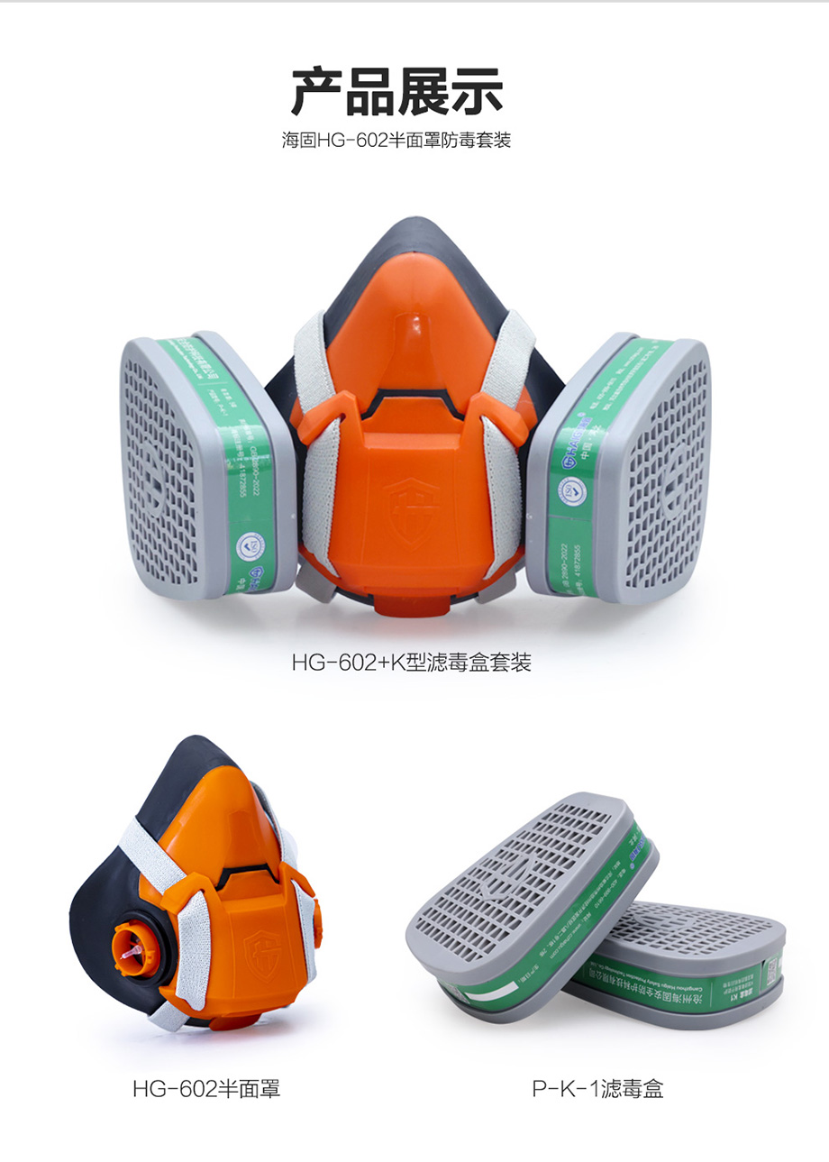 氨气防毒面具套装-海固602半面罩+K型4号滤毒盒