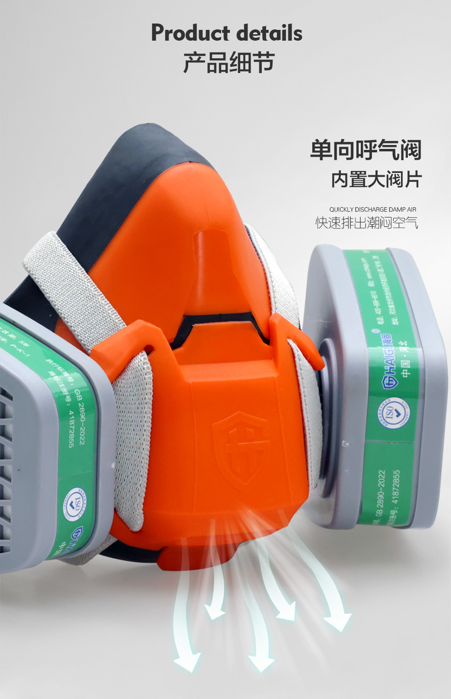 一氧化碳气体防毒面具套装-海固602半面罩+CO型5号滤毒盒