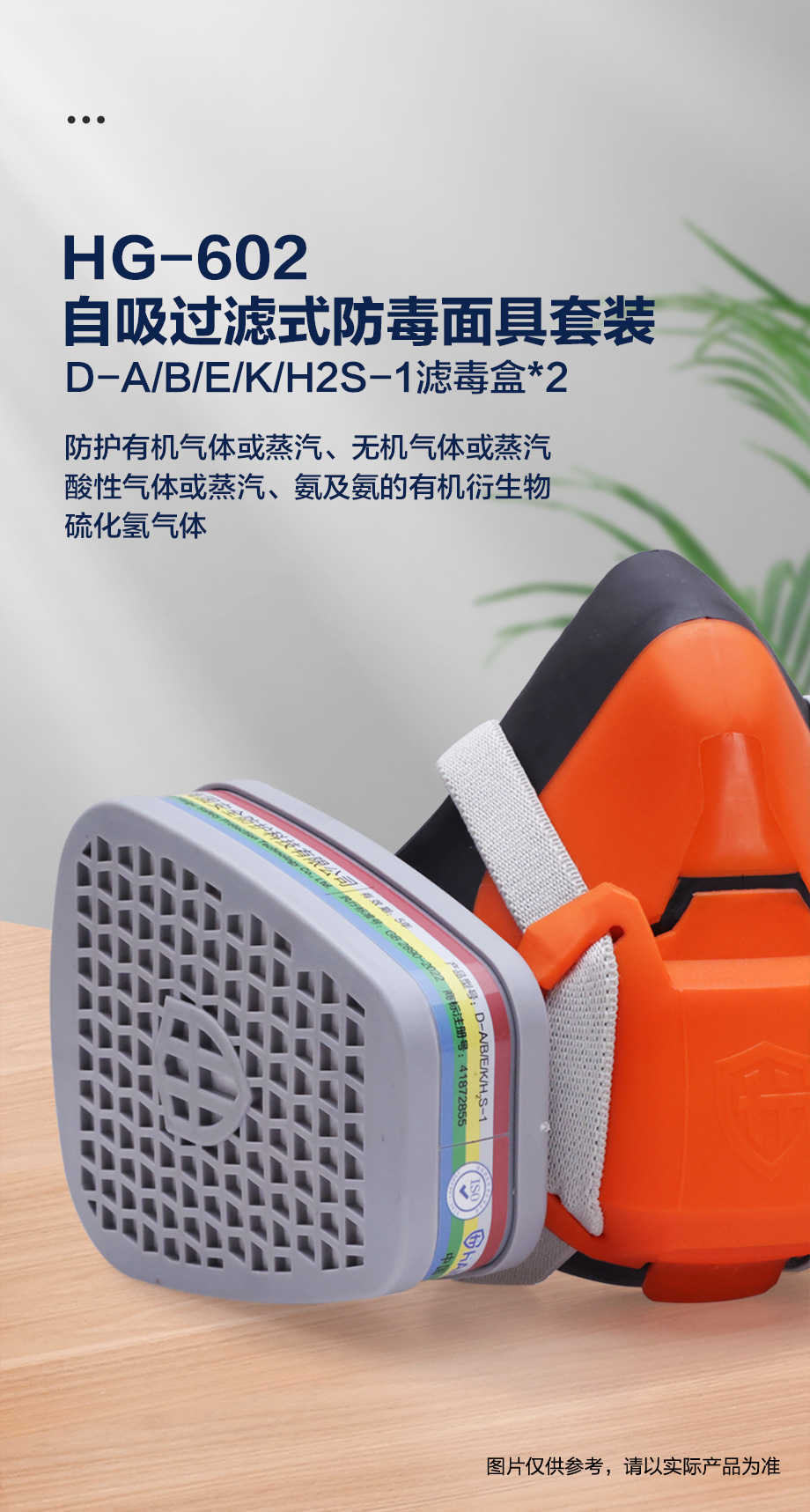 海固602半面罩+D-A/B/E/K/H2S-1综合多气体防护滤毒盒