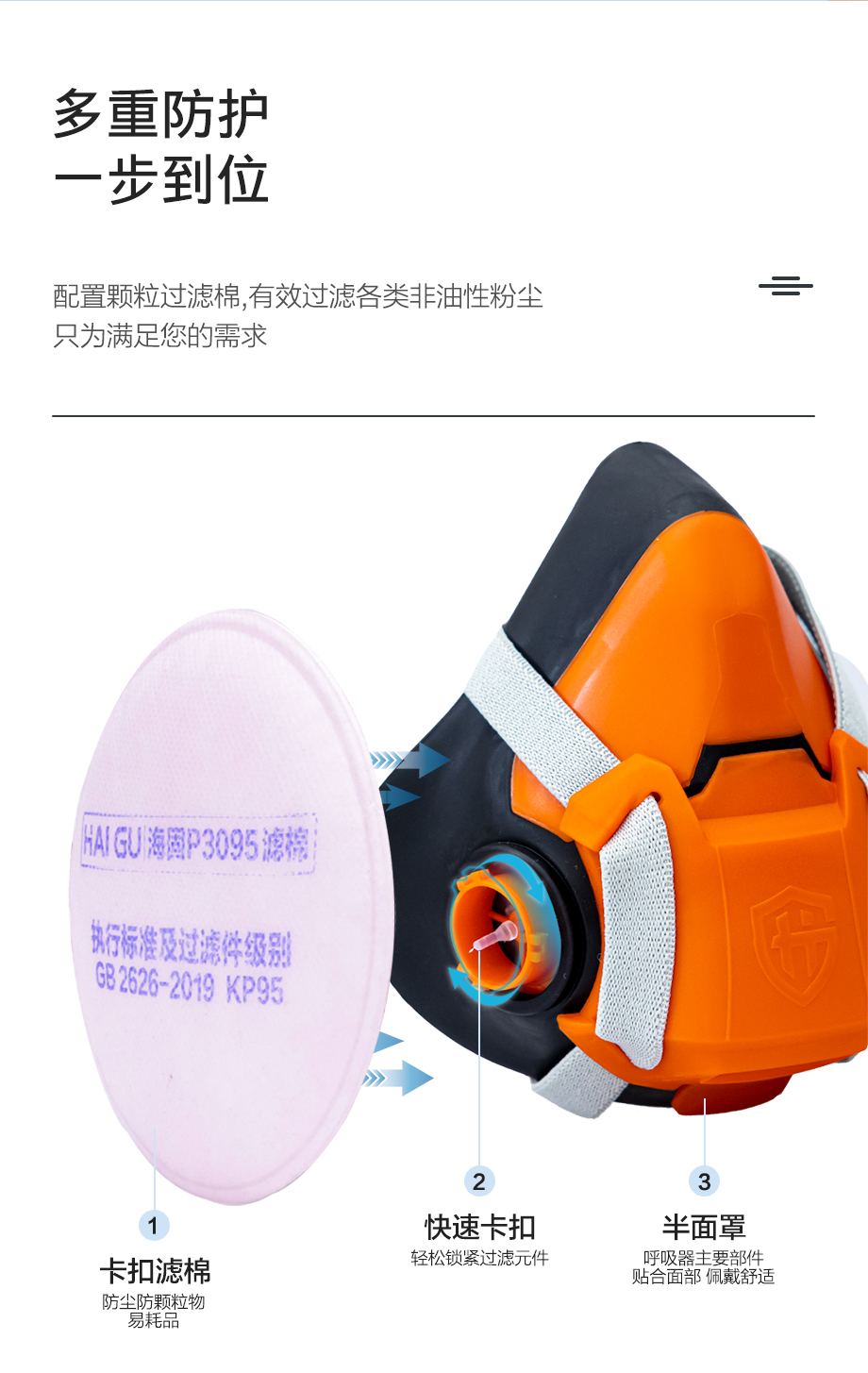 海固HG-602半面罩防毒面具+KP100/KP95/KP90油性非油性颗粒物滤棉