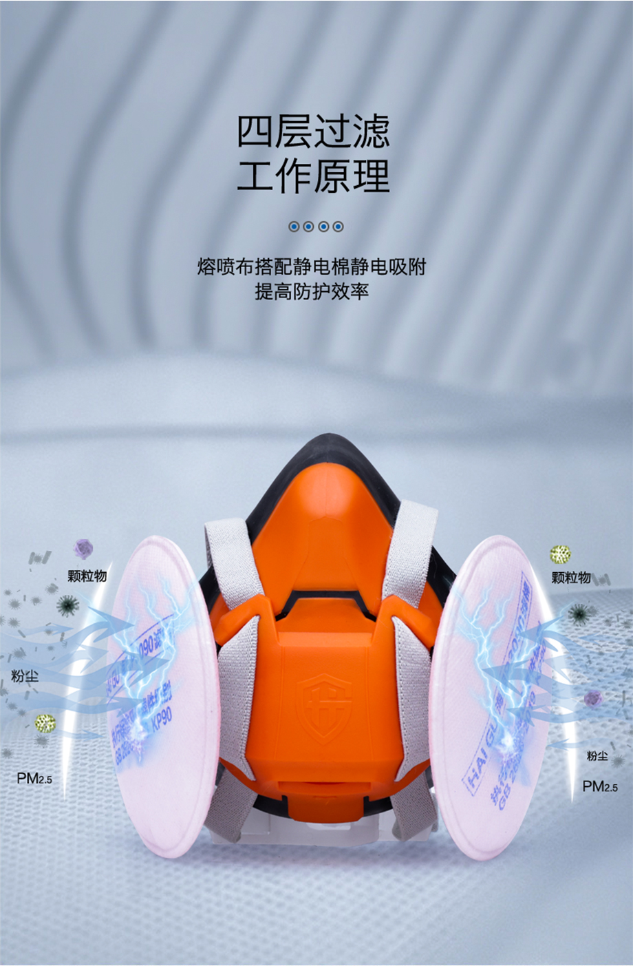 海固HG602半面罩防毒面具+KN100/KN95/KN90非油性颗粒物滤棉